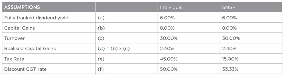 1.Investment returns are enhanced through the tax advantaged superannuation structure; however certain types of returns may receive greater tax advantages than others.