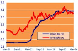 In the UK, the Bank of England kept the Bank rate unchanged at 5.25% at its last meeting for the quarter saying that “the economy is not at a point where the Monetary Policy Committee (MPC) can start cutting rates, but the economy is moving in the right direction.” In common with the US Fed the MPC needs more evidence of moderating inflation before beginning to cut rates. This may not happen until the second half of 2024.