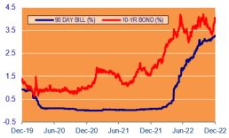 The Bank of England Monetary Policy Committee (MPC) also increased rates in December, raising the Bank Rate by 0.5% to 3.5% and noted that “the labour market remains tight and there is evidence of inflationary pressures in domestic prices and wages that could indicate greater persistence and thus justifies a further forceful monetary response and further increases in the Bank Rate may be required for a sustainable return of inflation to target.”