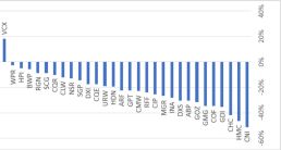 The sector has been one of the most impacted by the interest rate rises this year, both from the point of view of the underlying asset valuations and from the impact of higher interest payments for servicing debt. Property asset managers who have benefited most from the low interest rate environment, with hefty FUM (Funds Under Management) inflows and positive asset revaluations boosting top line growth through higher management fees and oversized performance fees, have seen their share prices grow strongly during the pandemic. However, these asset managers have given back all their share price gains as interest rates rose during 2022 and become the biggest laggards during the year. Examples of such underperformers include: Centuria Capital Group (CNI) down 51%; HMC Capital Ltd (HMC) down 46%, and; Charter Hall Group (CHC) down 41%.