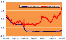 At its March meeting the US Federal Reserve, (the Fed), raised the Fed Funds Rate 25bps and market expectations are that the rate will be 2% by the end of 2022. Given the tight labour market, supply chain issues and sanctions on Russia pushing up commodity prices the prospects for higher inflation have increased markedly since this meeting and hence the prospect for higher interest rates. As a consequence, the quantitative easing cycle is over and will be replaced by quantitative tightening as the Fed reduces its balance sheet.