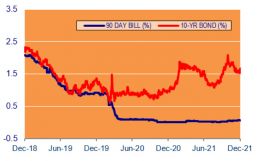 Finally, in the US the Federal Reserve is concerned about the prospects of higher inflation and is tentatively forecasting three rate hikes in 2022.