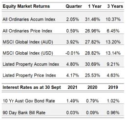 The A-REIT index was up 4.8% in the quarter to September. This has added to a very strong run since the COVID-19 impacted market correction in 2020, with a one-year total return of 30.7%.