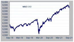 Supply chains may be only now spluttering back into action, but there are a number of other worrying signs: rising wages and labour shortages, increases in commodity prices both agricultural and industrial, which are feeding through to consumer staples, and importantly energy prices. This perhaps is important as it tends to have a powerful effect on inflationary expectations. Energy prices have increased as a result of gas shortages and low oil production levels as well as the transition of electricity grids from traditional generation to intermittent sources. This is proving more problematic than consumers have been led to believe and is starting to have widespread effects on industrial production (particularly in China). The issues may become more pronounced during the northern winter.